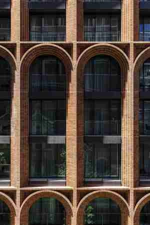طراحی نما آجری با مشبک های تو خالی و کج شده به سمت جلو