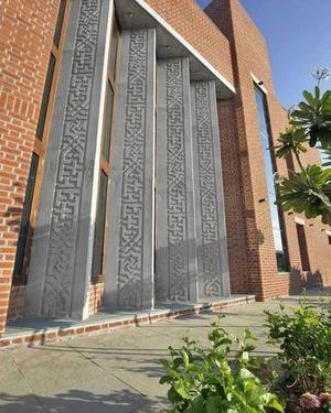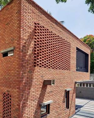 نمای آجر نسوز دو رنگ با سقف شیب دار