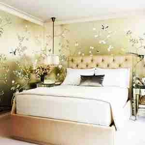 پتینه دیوار های اتاق خواب با گل و پرنده